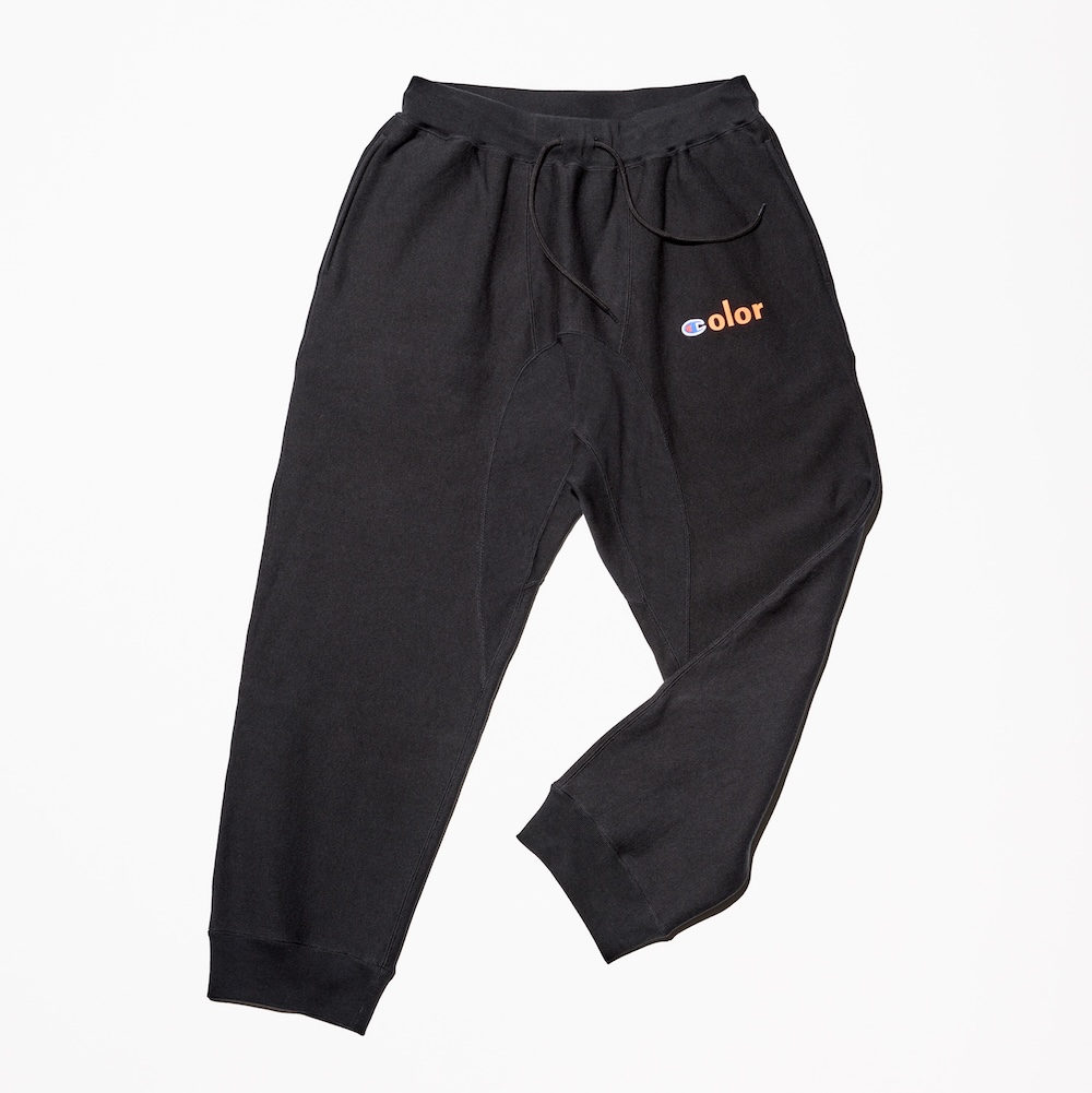 やはり「チャンピオン」といえば、洗濯による縮みを巧みに防ぐREVERSE WEAVE®(リバースウィーブ®)製法を使用したスウェット。そこに「カラー」の十八番である大胆なプリントや計算されたサイジングでアレンジが加えられています。今回はクルーネック、フーディ、パンツの3型がラインナップ。