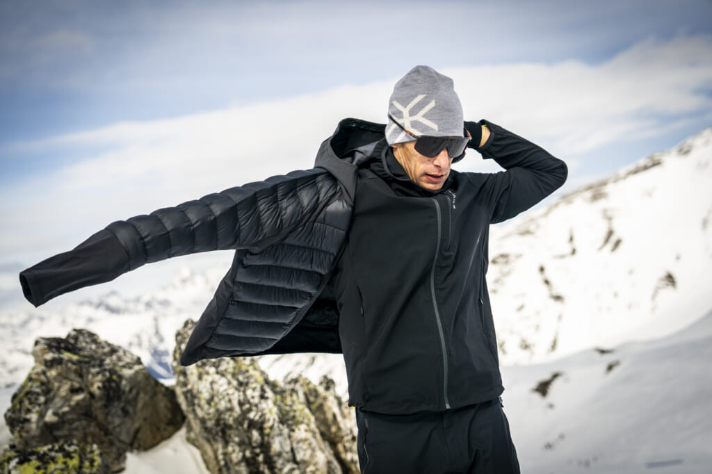 スイスアルプスの氷河から命名された“FORNO”はノースリーブ=ベストタイプだ。ハーフジップのパッカブル仕様とし、スタンドカラーで首元をしっかりガードしながらショート丈でハードシェルの下に着てもかさばらない。重量は約380gとなっている。