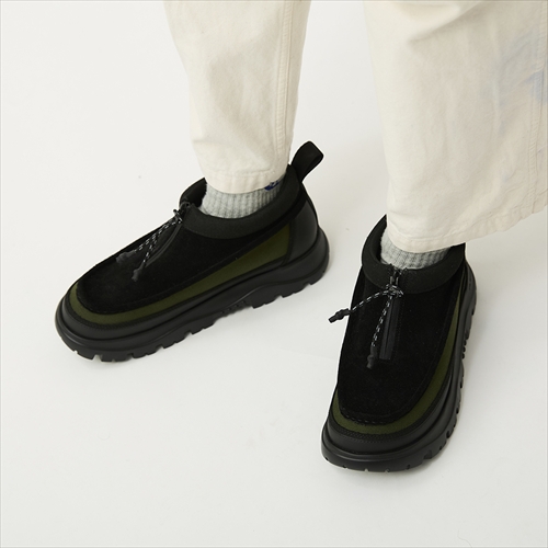 軽くて撥水性能に優れるアッパー、グリップ力に優れるオリジナルのソールを搭載。古き良きモカシンに敬意を払いつつ、シャカが誇る機能的素材を用いて今っぽく表現。