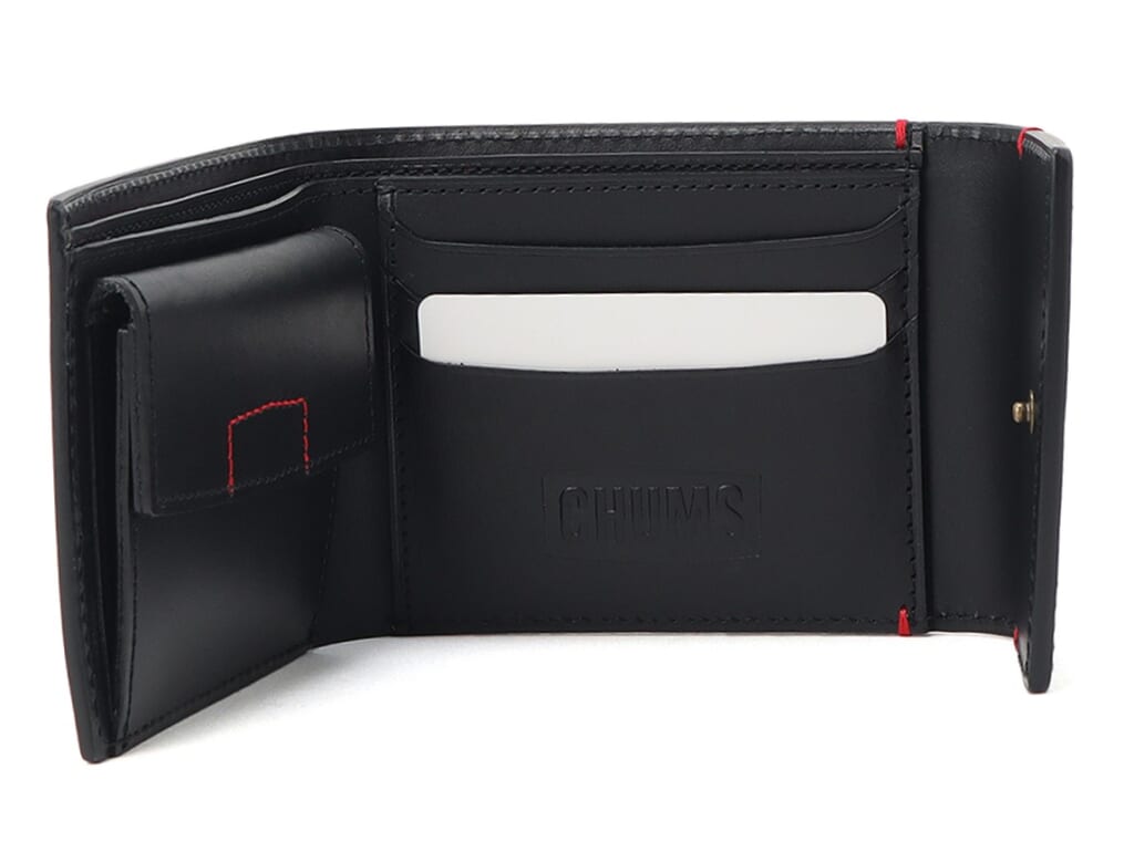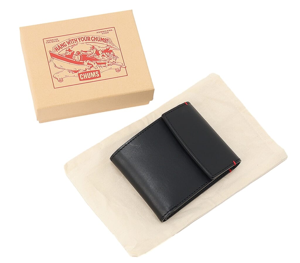 フラップ&ボタンでしっかりと留まめることができ、小銭入れも備えているから一つで賄える。ブービーバードの型押し、随所の赤ステッチ、隠しポケットなど細かなディテールが本気を感じさせる。ベルト同様にこちらもキャメルとブラックをラインナップ。