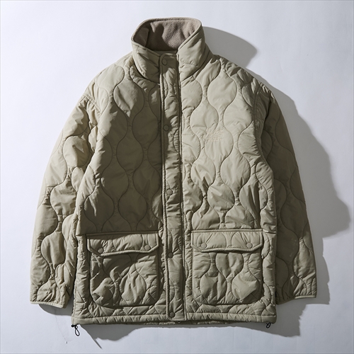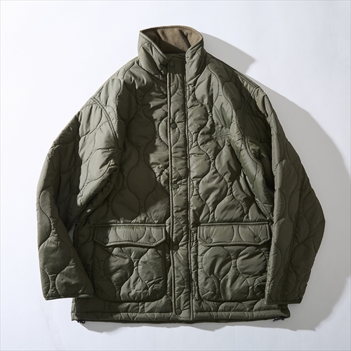無駄のないデザインと湾曲したキルトナイロンを使い、ミリタリー調のミドル丈ジャケットに。程良くゆったりとしたシルエットで、フラップポケットは裏地にフリースを配置。