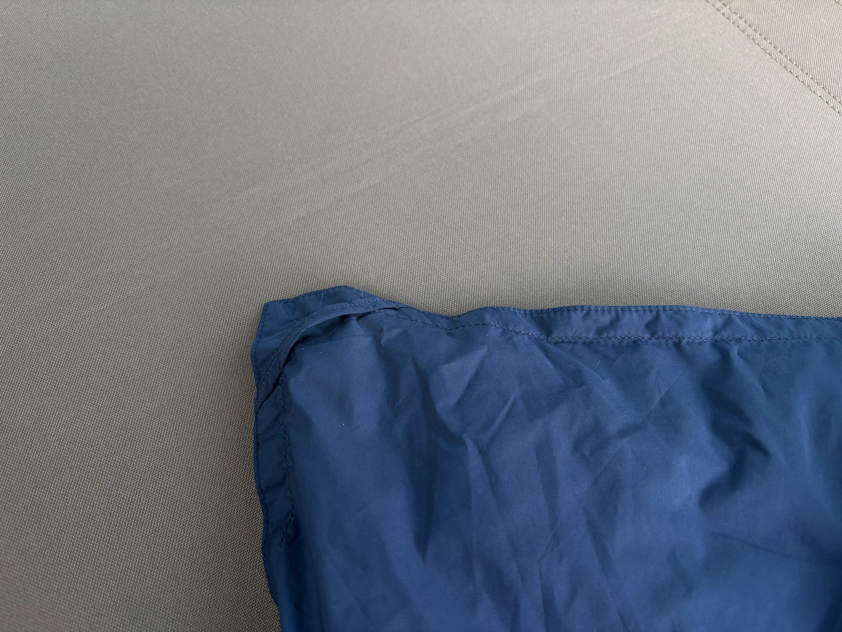 フカフカでとても柔らかく、表地はナイロンなのに手触りもサラッとしていて◎。撥水素材なのでテント泊での結露にも対応してくれます。四隅にはループが設けられており、シーツを付けたり干す際にも活躍しそう。