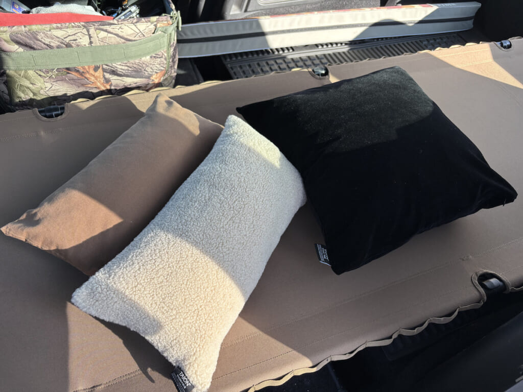 サイズに応じて形状の異なるクッションカバーも付属しており、ベロア、キャンバス、ボアと選べるのもうれしい。車中泊時の枕にしたり、長距離運転時に腰当てにしたり、色々使えそうじゃないですか? もちろん、自宅で使ってもOK(むしろそっちが本線)。テレワーク時の膝掛けや夏掛け布団として揃えておきたいです。