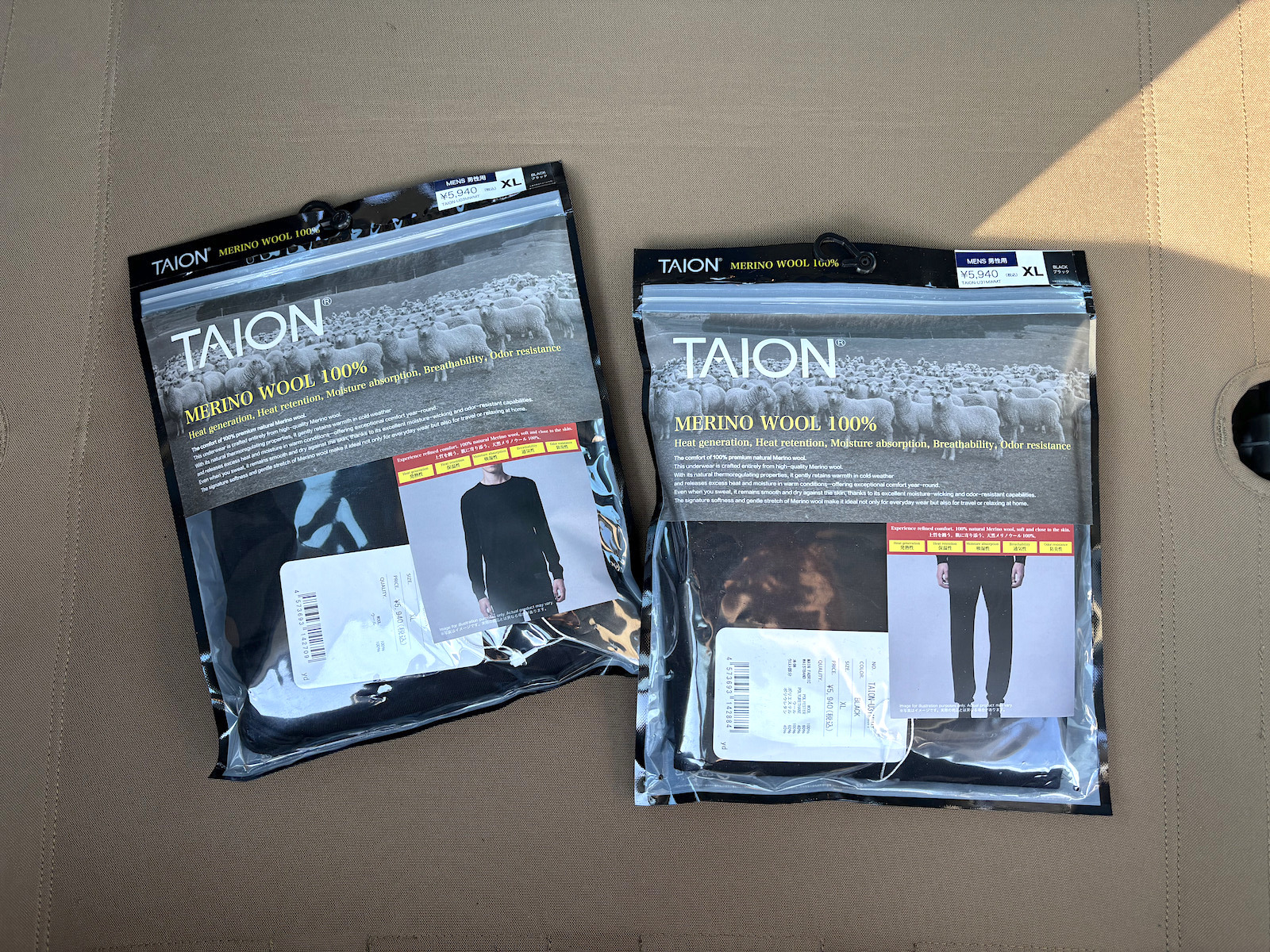 最後に、ルームダウンシリーズではないですが、個人的に気になっていた「TAION」のメリノウールインナーもご紹介。
