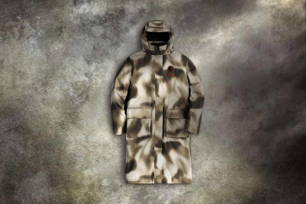 ハン・ソロが身につけていた戦術装備をインスパイアした、着回し自在な3in1トレンチジャケット。映画の衣装に着想を得たオリジナルの迷彩柄を採用し、反乱軍の紋章やSWの銀河標準語(銀河ベーシック)であるオーラベッシュ文字のメッセージなどファンの心をくすぐるディテールに。