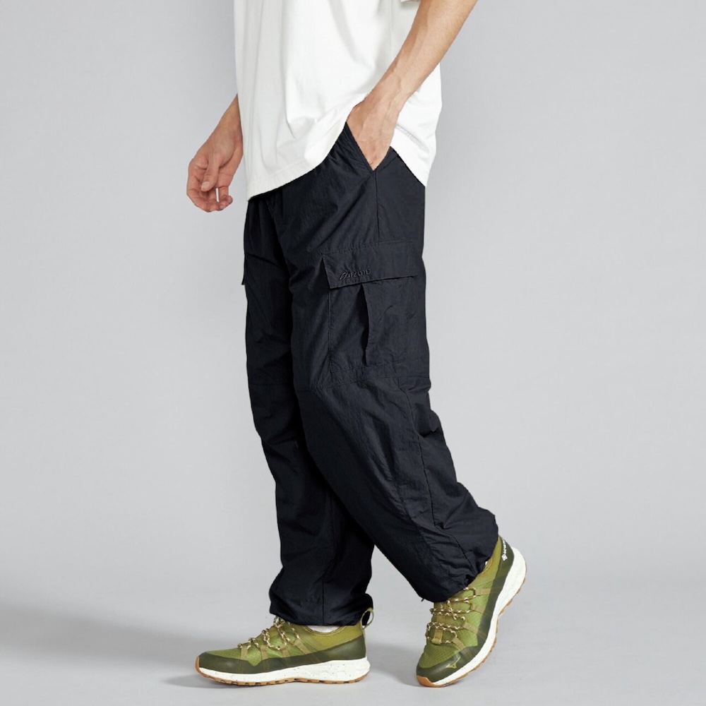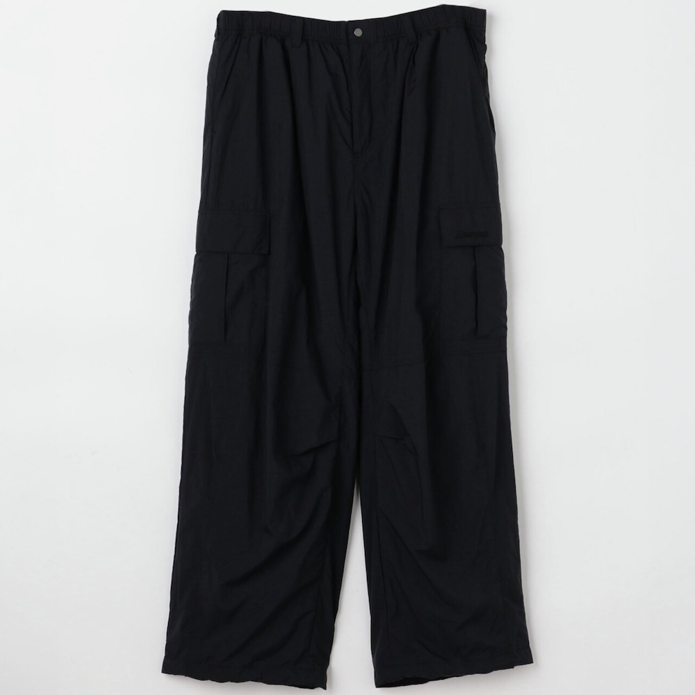 ワイドシルエットなカーゴパンツは、ドローコードで調節可能なウエストや、しっかりと絞り込める裾などのギミックが満載。