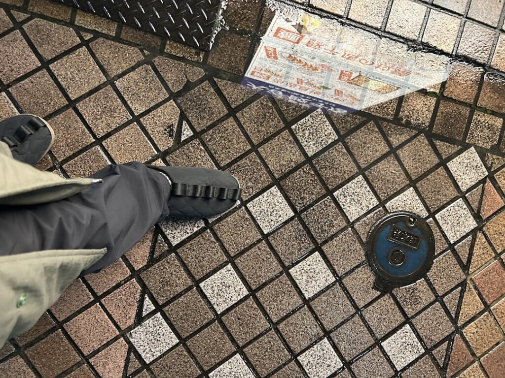 夜から小雨が降って来たのですがスリップなどは全く気になりません。カカト側からの跳ね上げによる靴下の濡れもほぼ気にならず。こちらで出かけて急に降られても、小雨くらいなら対応してくれそうです。