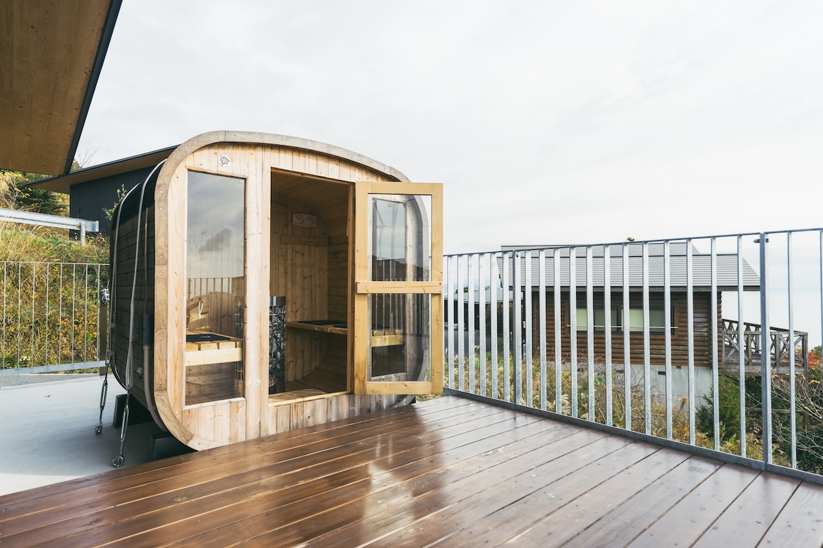 また棟外には、サウナライン「ReFresh!Service.(リフレッシュサービス)」のサウナハットやサウナマットが設置されている貸切サウナも。五感で楽しめる贅沢な内容ですよね。