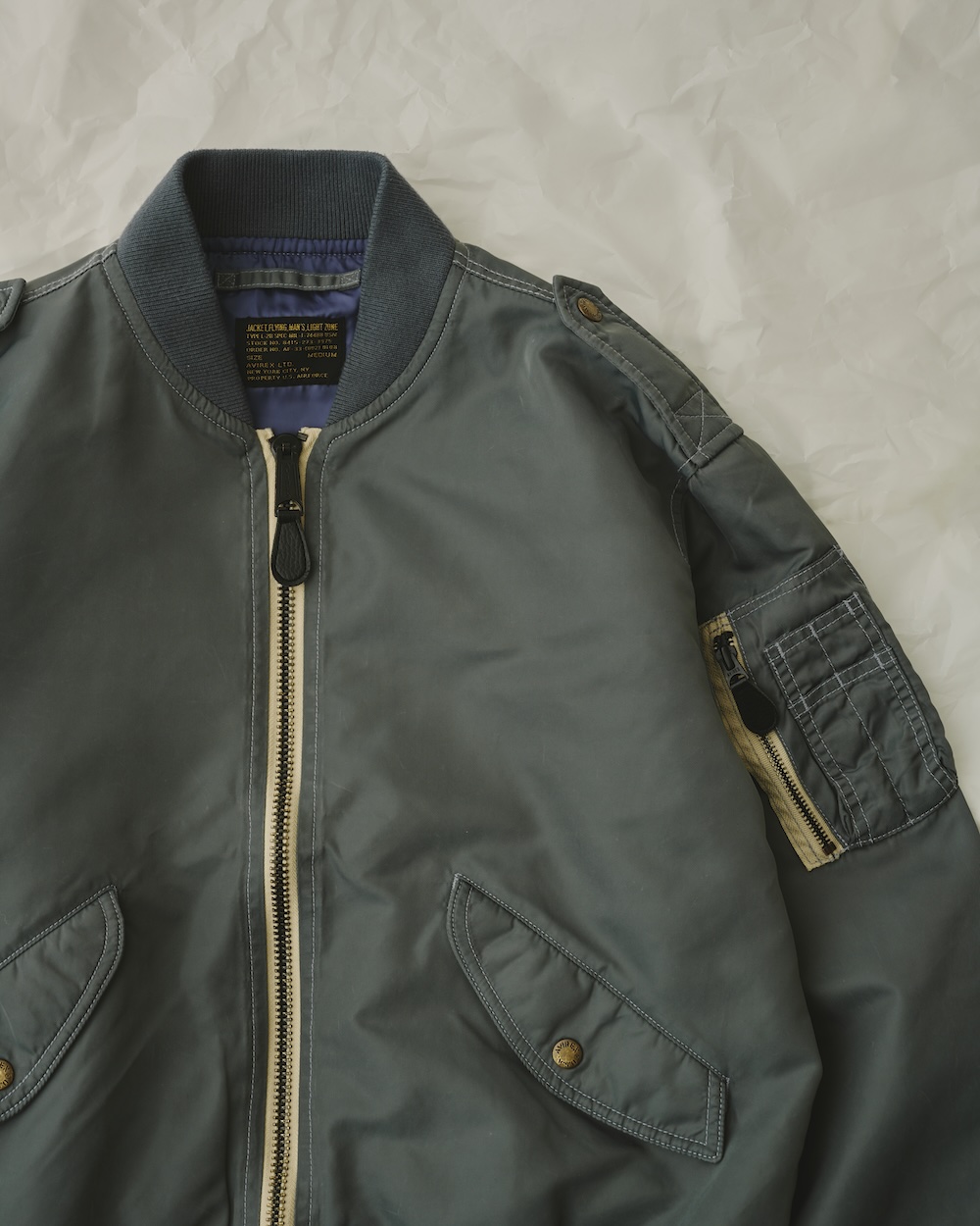 1950年代初期のモデルをベースに、中期以降のモデルとは異なる、希少な“SPEC:MIL-J-7448B”のディテールを再現しています。着目すべきは、当時の仕様をそのままに、裏地のレスキューオレンジを使用していない点。ヴィンテージ市場でもあまり流通していない型が、時を越えて現代に蘇りました。