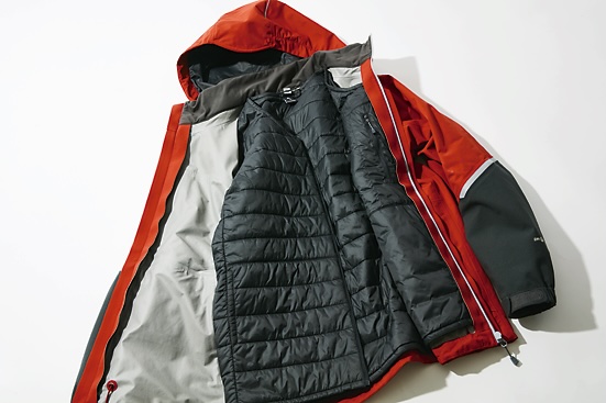 季節や気温の変化に応じて着用できる3WAY。単体でも着用できるインナーダウンには、汗や湿気に濡れても高い保温力と速乾性を発揮するエクセロフトを封入。