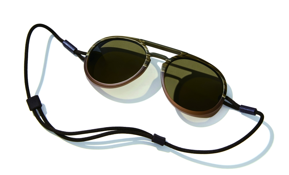 コードで顔にフィットさせる構造に、カールツァイス社製の偏光レンズを使用。