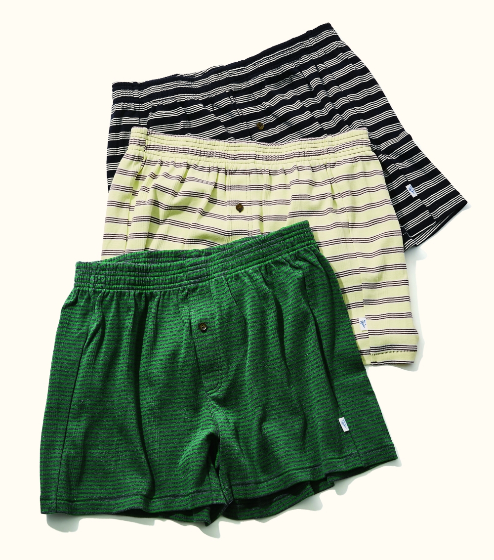 ミラー社独自の針抜き仕様のパネルリブ生地を使用して作ったオリジナル型のトランクス。