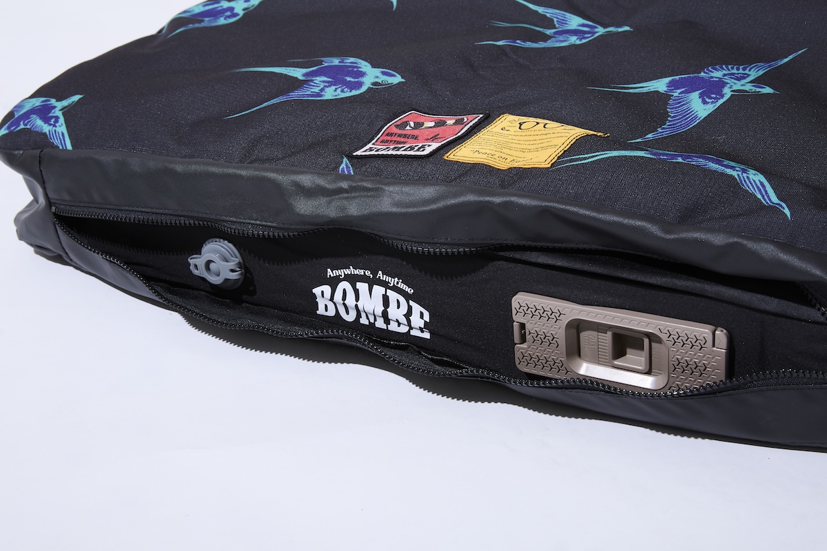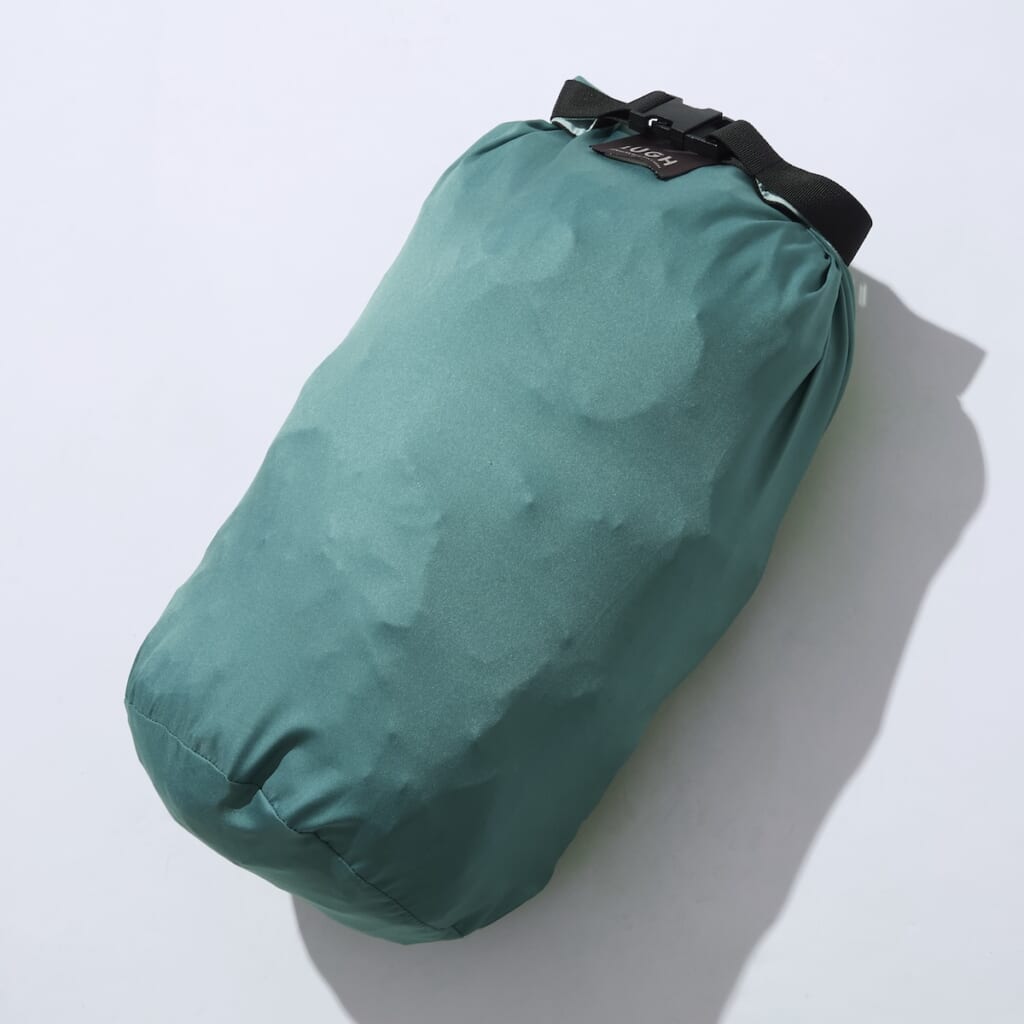 空気を入れると10cmの厚さになり、硬すぎず柔らかすぎない絶妙なクッション性で、どんな場所でもカラダを、しっかりとサポートしてくれる。ボトムはPVC生地なので濡れや汚れに強く、地面に直接置いても問題なし。もはや屋内外で使えるエアベッドと言っても過言ではない。