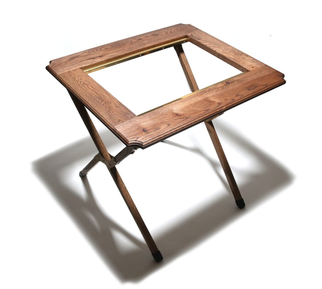 別売りの真鍮製の天板をセットできるが、スノピのフラットバーナーを組み込んでキッチンテーブルにするのもあり。
