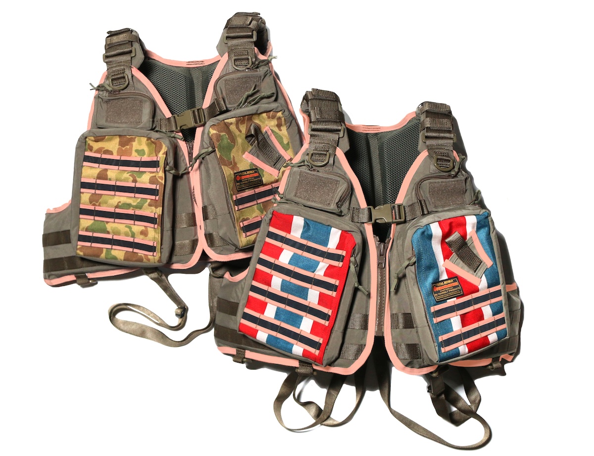 スタイリッシュなフィッシングギアを提案するブランド、サブロックとのコラボアイテムは、ナイロン生地で作られた無骨なフィッシングベスト。