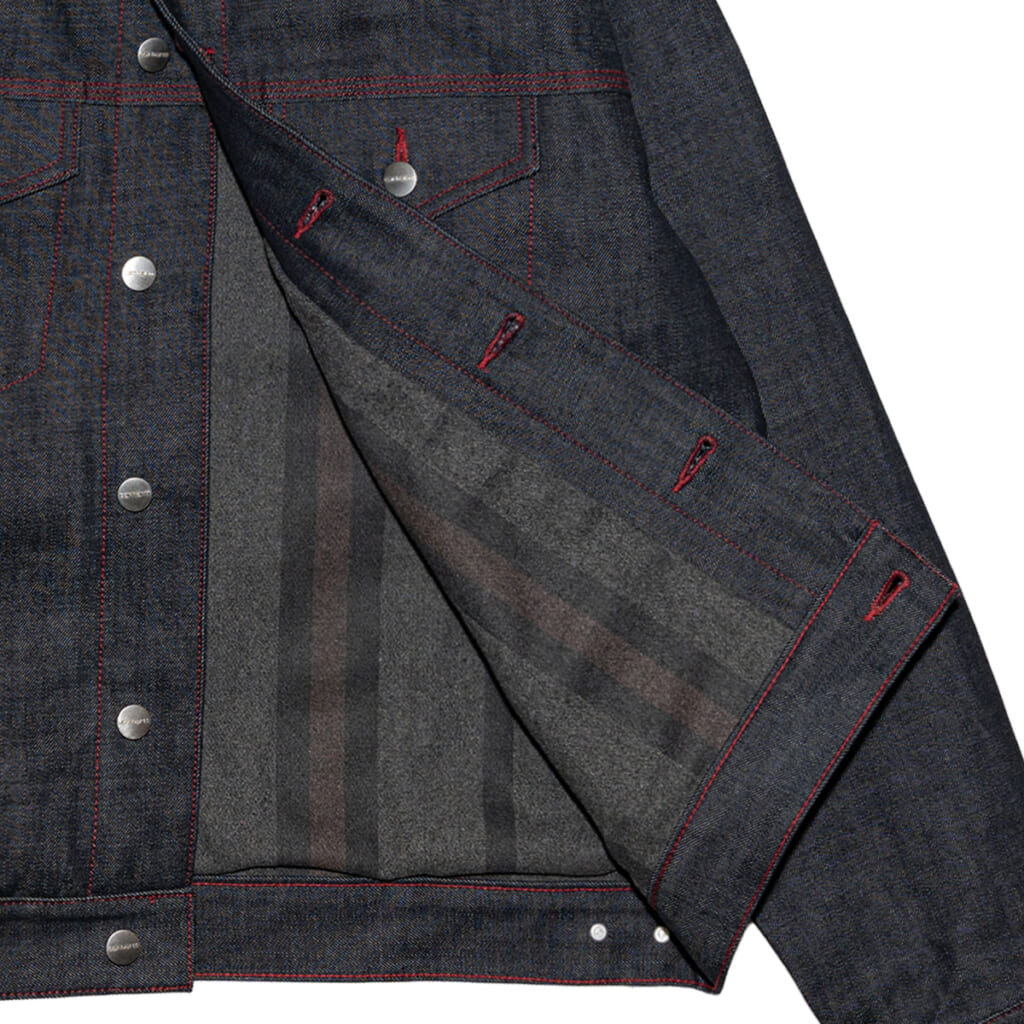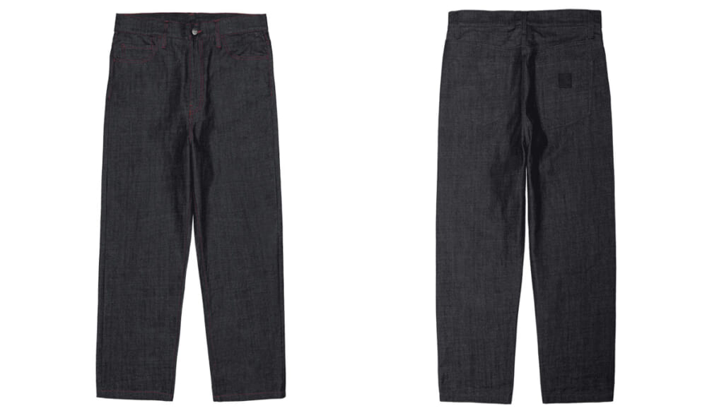 同時に発売される“Rigid Denim Pant”は、「Carhartt WIP」の 5ポケットパンツの中で大人気を誇る”Landon Pant“ を日本だけのエクスクルーシブ仕様として再構築されたもの。ジャケットと同じく13.5ozリジットデニムに赤色のステッチで仕上げられている。