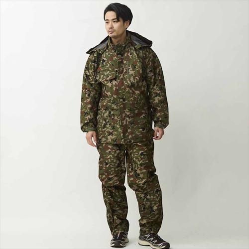 3レイヤー仕様のゴアテックス素材を落とし込んだ、雨風の侵入を防ぐセットアップ。トップスは多彩なポケットを備え、パンツは裾にジップをレイアウト。