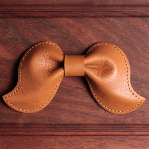 ハイクオリティなレザーを蝶ネクタイにアレンジ。ヒゲをイメージした滑らかな流線型が印象的で、着こなしのアクセントになるだけでなくフォーマルなシーンにも最適。