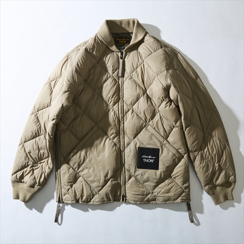 ダイヤモンド型のキルティングが印象的な名作ジャケットを、タイオンが誇る上質なダウンを用いて完成。両サイドのジップで脱着がスムーズに演出したのもコラボの特徴。