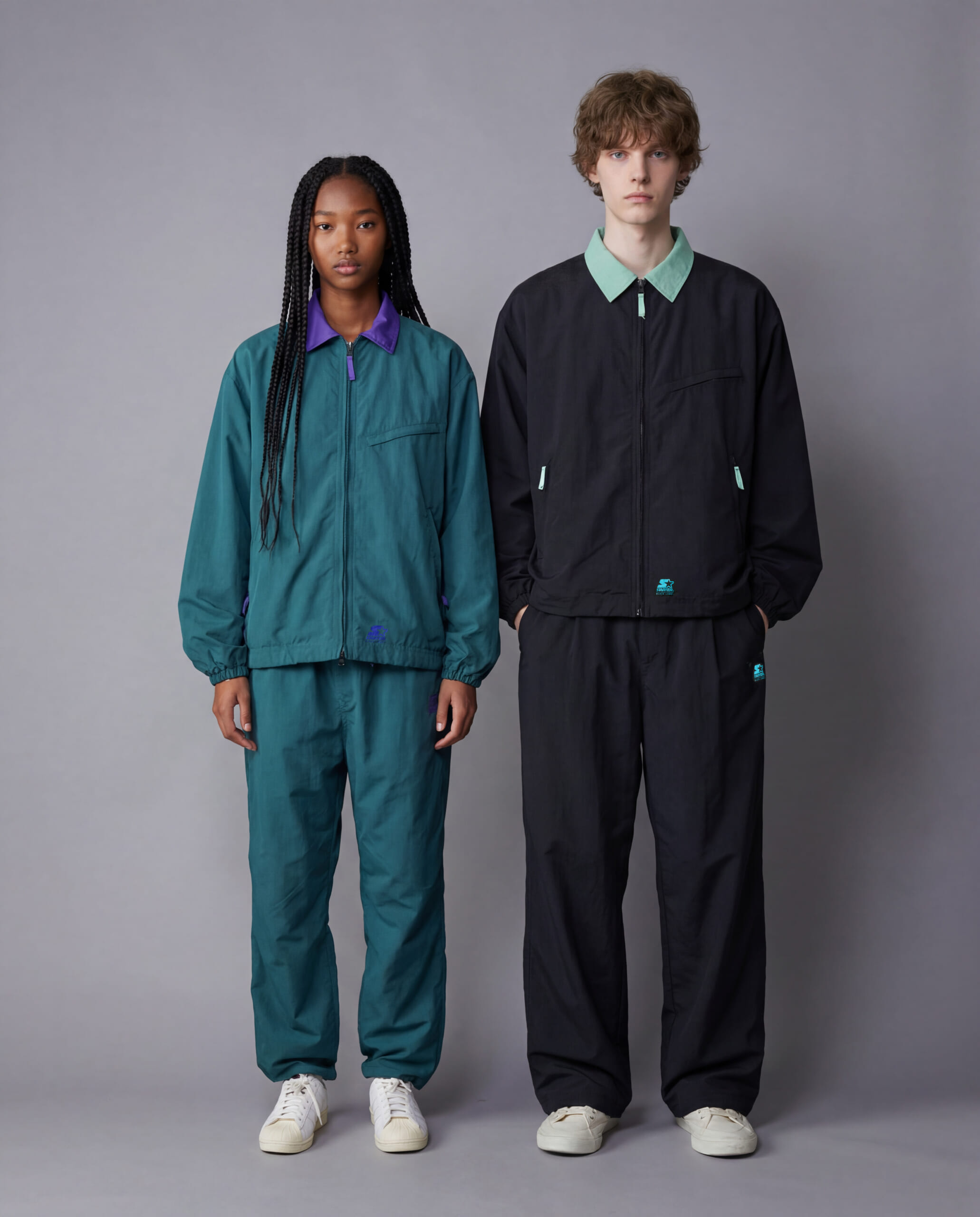内側には通気性に優れたメッシュライナーを備え、蒸れを軽減してくれます。襟元やファスナーの引き手にはコントラストカラーを配して、左裾には「スターター」のロゴプリントが鎮座。身幅もゆったりとしているので、インナーを着込んでも干渉しないというのも◎。