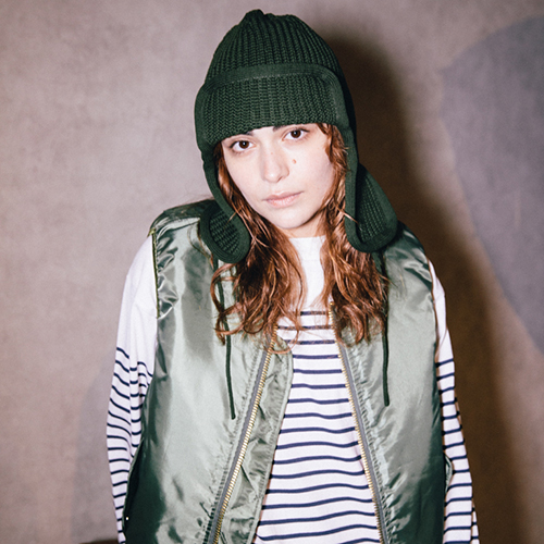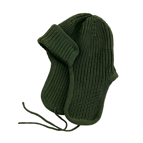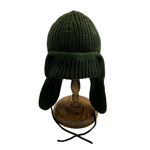 デザインソースとなったミリタリーのバンバーキャップを、柔らかで伸縮性に富んだニットボディで表現。無駄のないデザインによって表情が豊かな凹凸感を引き立てました。