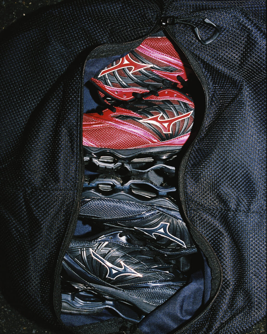 テキスタイルにシンセティックレザーを重ねたエクステリアが特徴的な一足は、レッド × ブラックと、ネイビー × シルバー × ダークブルーが 2026年 1月 16日(金)より、『ミズノスポーツスタイル』直営店舗とミズノ取扱店にて展開がスタートしたばかり。