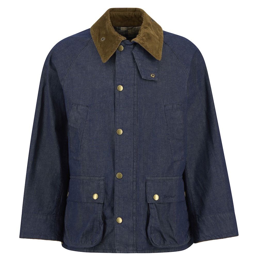 続いては“BEDALE”、“TRANSPORT”を耐久性に優れたデニム素材にシフトしたモデル。コントラストを効かせるために、8ウェールのコーデュロイを使用した襟や袖口も魅力的ですよね。背抜きのタータンチェックが「バブアー」らしさをより際立たせてくれます。