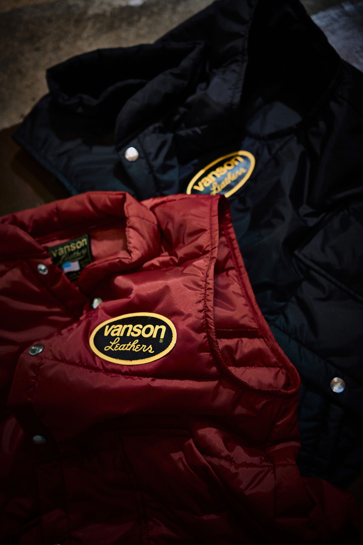 今回プロデュースしたのは、コーチジャケット、ナイロンベストの布帛2型と、SS Tee、LS Tee、P.O HOODED のカットソー3 型の計5 型。「VANSON Leathers 」の当時モノのアイテムをソースに、現代的なファッションシーンでハードユースできるコレクションとなっている。