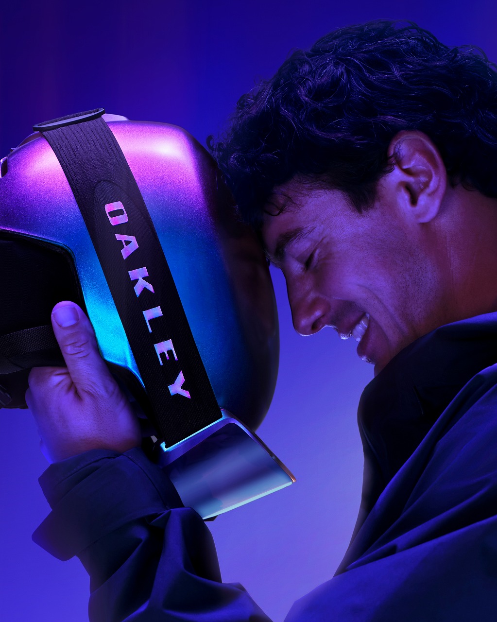 パープルやグリーン、レッド、ゴールドをミックスし、光の反射と屈折によって、まるで虹のように表情が変化。ダイナミックに色合いが変化する当カラーは、オークリーの代表的なアイウェアやヘルメット、アパレルにも採用。立体的な輝きを放つブランドロゴやディテールは見るものを魅了するとともに、視認性を高める役目も!