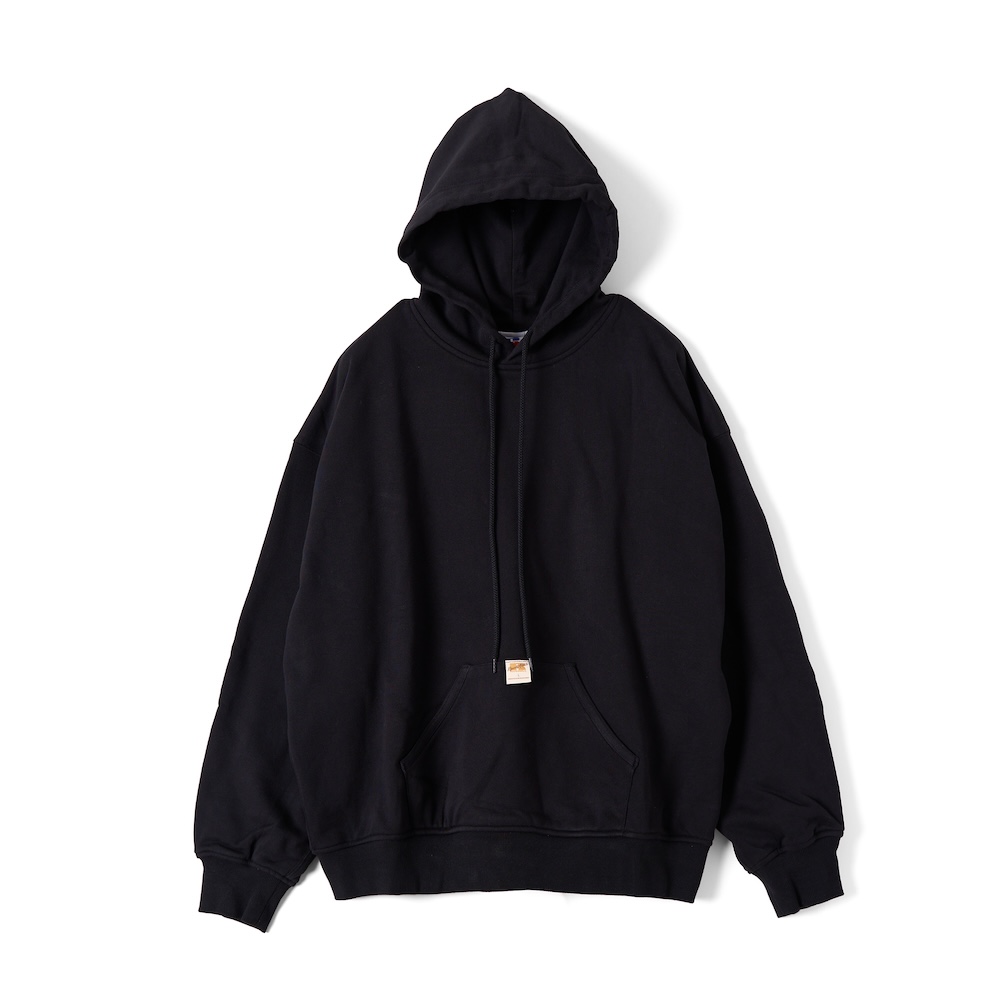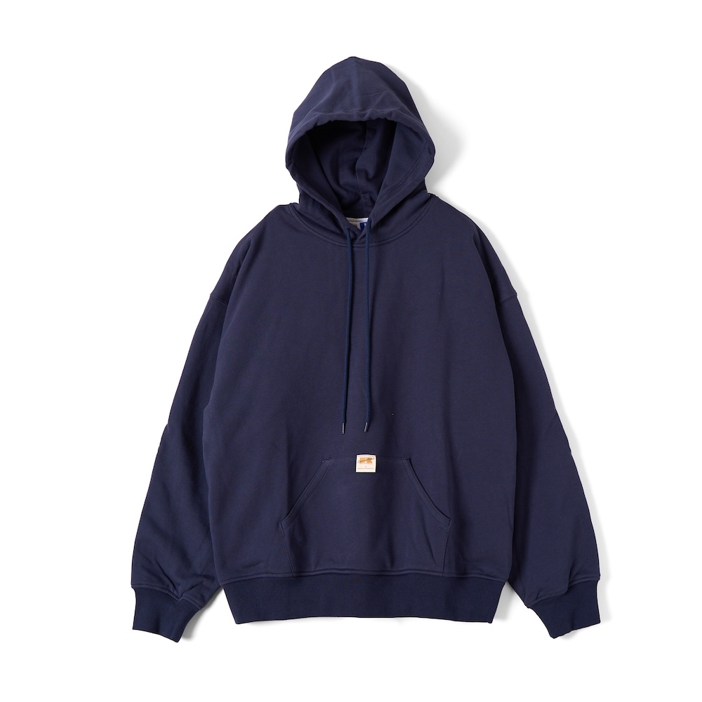 “HIGH COTTON™”というコットンとポリエステルを混紡した生地を使用したフーディ。首元のスナップボタンと、裾に配したドローコードが特徴的で、左脇には、コラボレーションの証であるピスネームが配置されています。