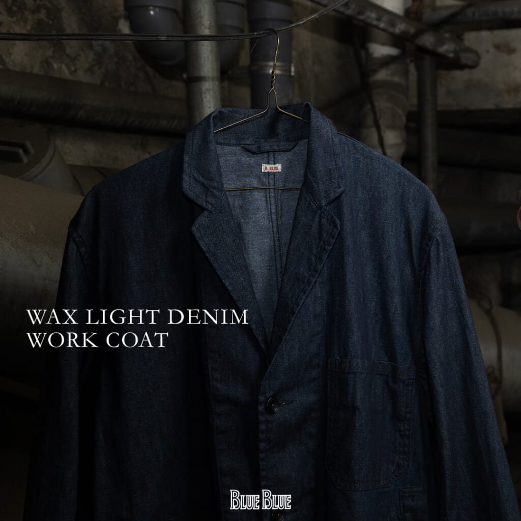 『聖林公司』がプロデュースし、デニムとインディゴブルーに拘りながら素朴でベーシックなモノづくりを展開するブランド「BLUE BLUE(ブルー ブルー)」より、撥水ワックスコーティング加工を施したデニムワークコートが登場。