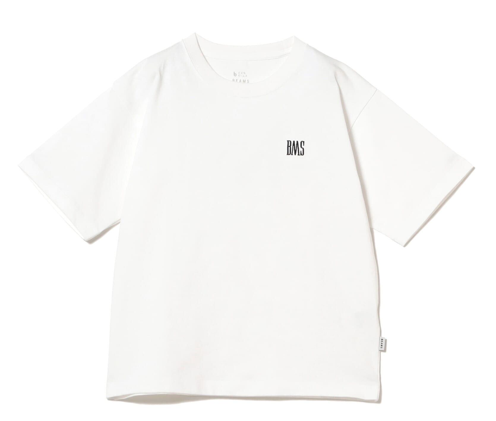 左胸に“BMS(BEAMS)”の刺繍がほどこされた定番のクルーネックTシャツ。身幅にゆとりをもたせたリラックスシルエットで、ホワイトとブラックの2色展開。