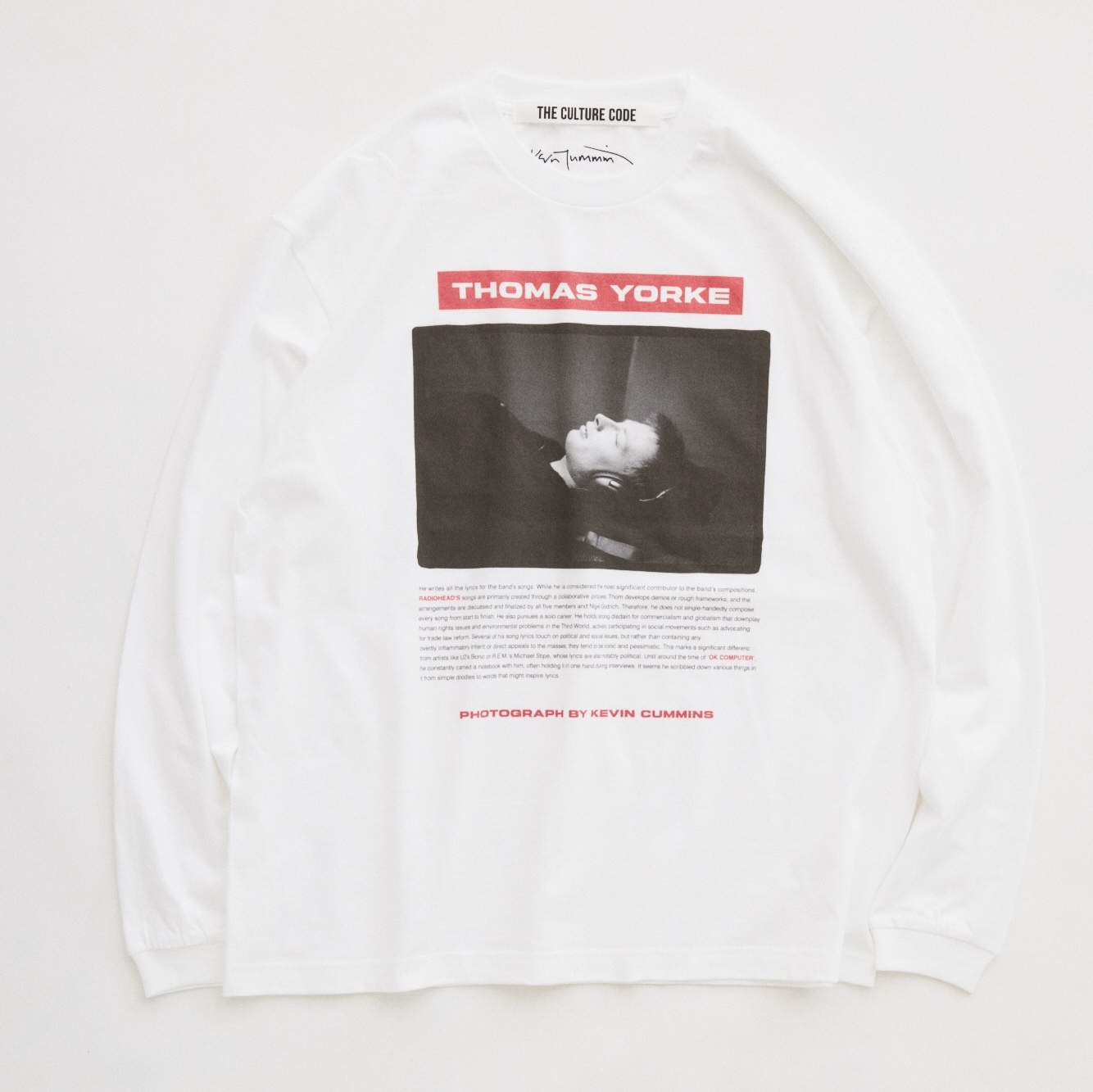 フロントにはメンバー全員が揃ったアイコニックなフォトと、フロントマンである Thom Yorke(トム・ヨーク)のソロショットを大胆にプリント。