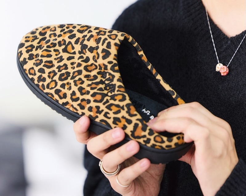 スリッパ感を保ちつつも、シューズとしての要素を備えたVAMPの今季コレクションモデル。ウール素材をベースにしたレオパード柄。