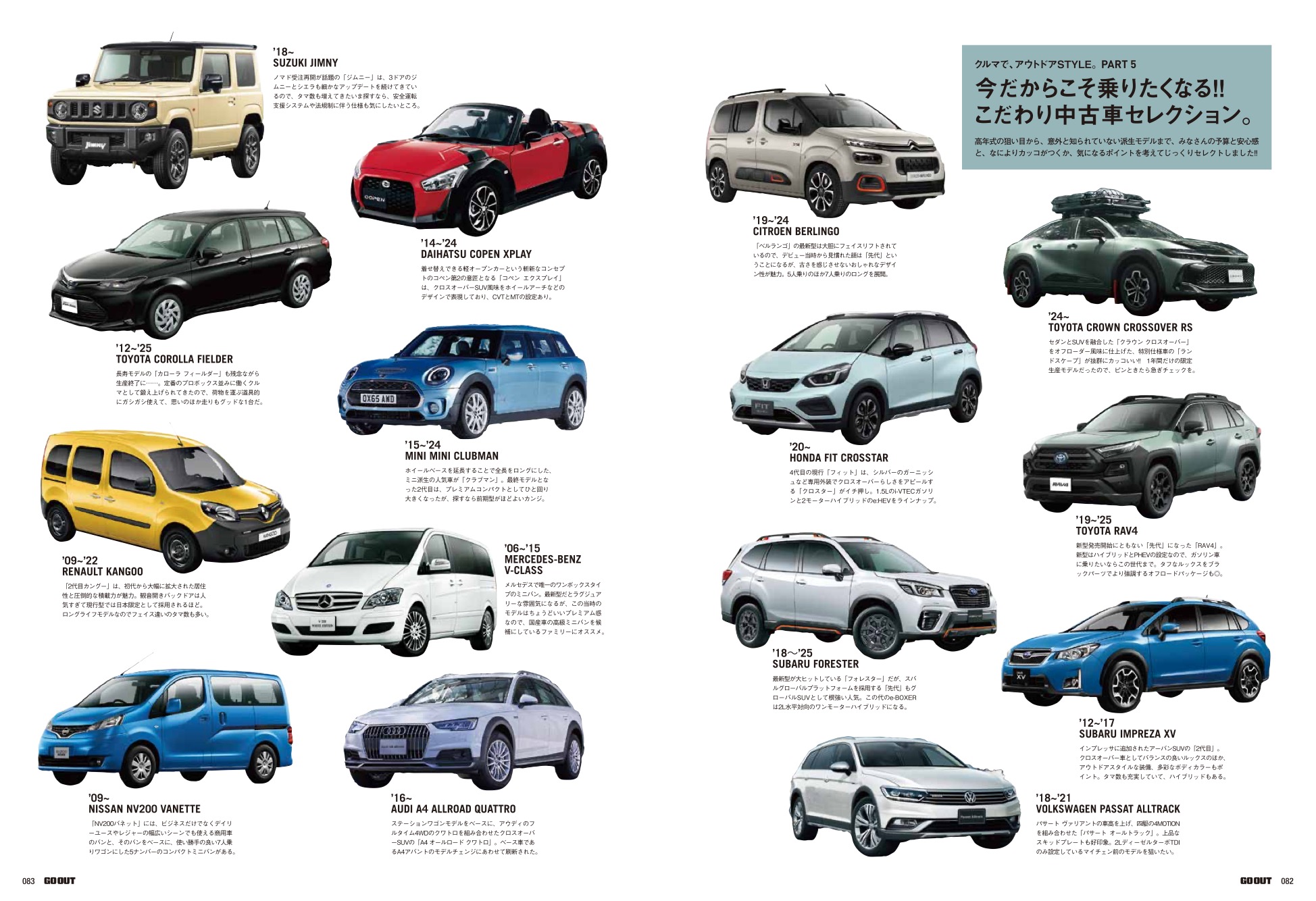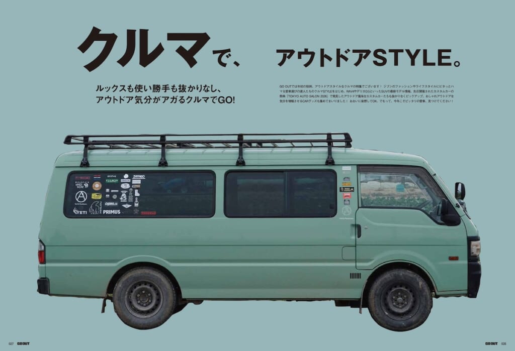 GO OUTでは年初の恒例、アウトドアスタイルなクルマの特集でございます! 愛車選びの達人たちのクルマSTYLE、アウトドア風味なカスタムカーに加え、おしゃれアウトドアなCARグッズも集めてまいりました! おおいに妄想してOK。でもって、今年こそジブンにとってピッタリの愛車、見つけてください!