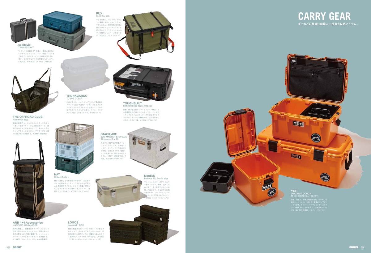 さらに、おしゃれアウトドアな気分を増幅させるCARグッズのほか、シャープかつクールにキマる“黒”アイテムにこだわって集めたブラック至上主義と、今月も内容たっぷりでお届けいたします。