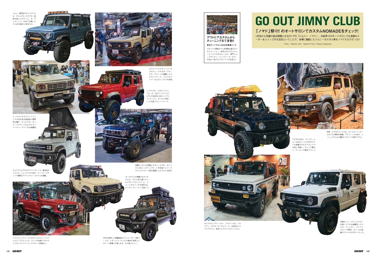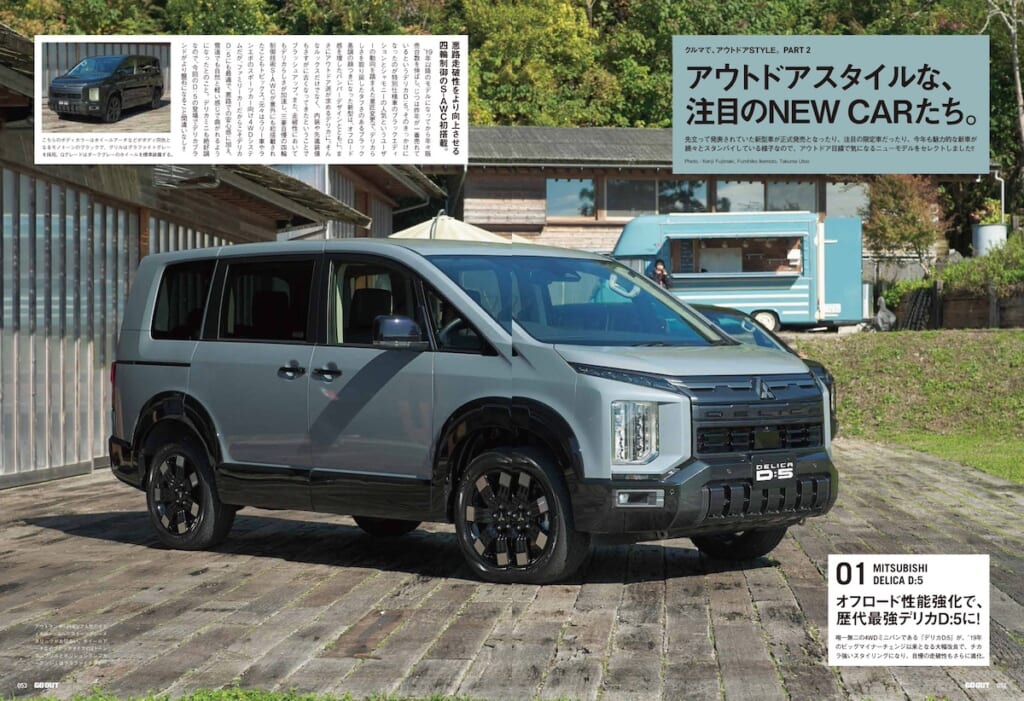 1/30(金)に発売となるGO OUT vol.197 3月号『クルマで、アウトドアSTYLE。』では、ジブンのファッションやライフスタイルにビタっとハマる愛車選びの達人たちのクルマSTYLEをはじめ、RAV4やデリカD:5といったSUVの最新モデル情報、先日開催されたカスタムカーの祭典「TOKYO AUTO SALON 2026」で発見したアウトドア風味なカスタムカーたちも抜かりなくピックアップ!