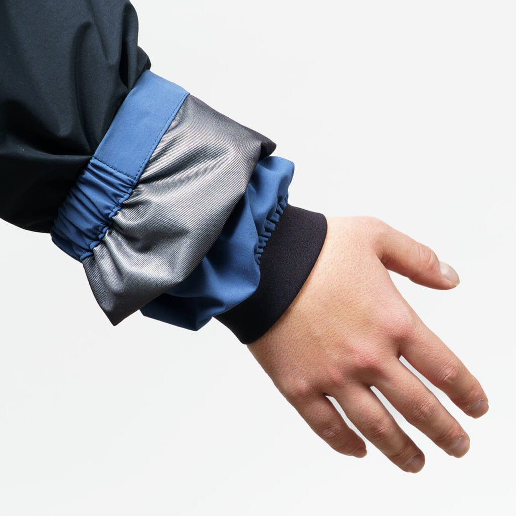 肩から腕にかけての立体的なパターンによってキャスティング時もスムーズに追従するからストレスなく楽しめる。また、袖口はインナーカフスで別売りのストレッチレインガードを併用することで水の侵入を軽減可。