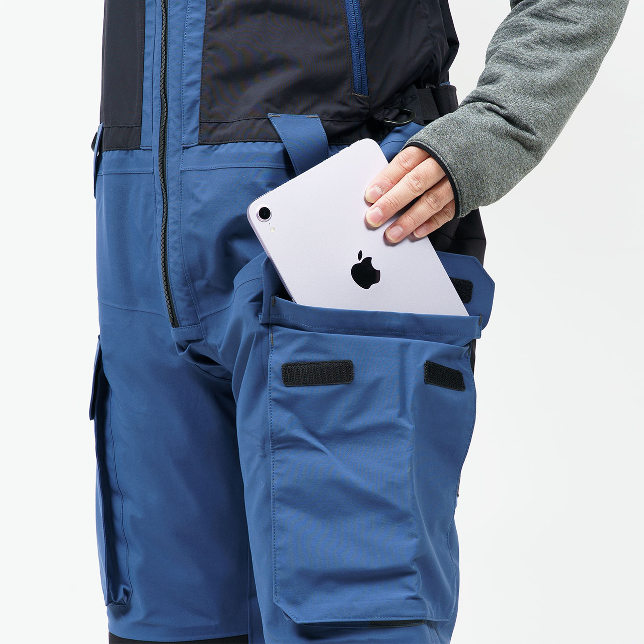 また、負担のかかるヒザやお尻部分は高耐久のコーデュラで補強しつつ、可動域が広がる立体パターンを取り入れてスムーズに動けるように。両サイドにルアーケースやB5サイズのタブレットが収納できるカーゴポケットも備えている。