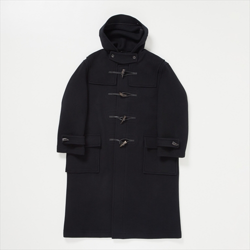 膝も覆うほどのオーバーサイズにより、優しく身体を包み込むダッフルコートに。ウールをベースにナイロンを混紡することで、暖かさを高めつつも軽やかに着られる一枚に。