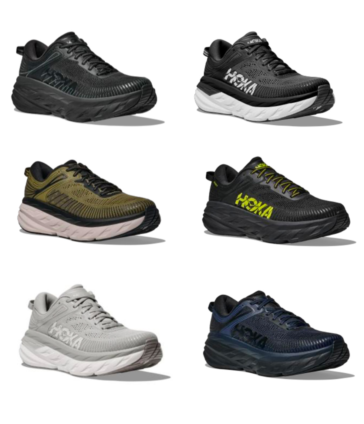 BLACK/BLACKとBLACK/WHITEは、特に人気の高かった OGカラー。他は新色で、HOKA CITRUSなどHOKAのヘリテージを表すカラーが使用されているモデルも含まれている。