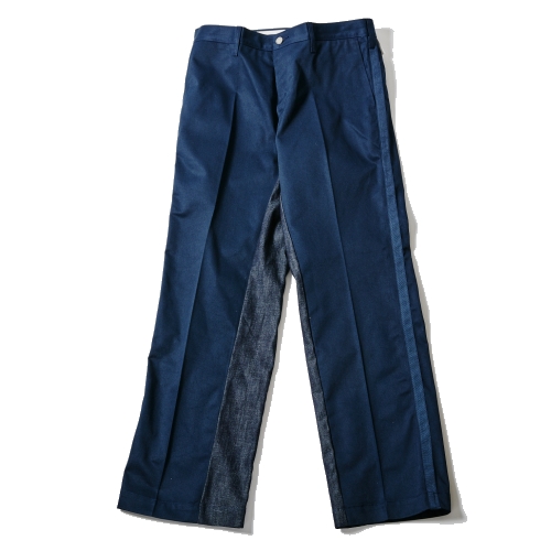 屈強なワークパンツを解体し、ザ ファブリックがデニムを使ってカスタム。ポストマンパンツをモチーフとした一本で、穿くほどに身体に馴染んでエイジングが楽しめます。