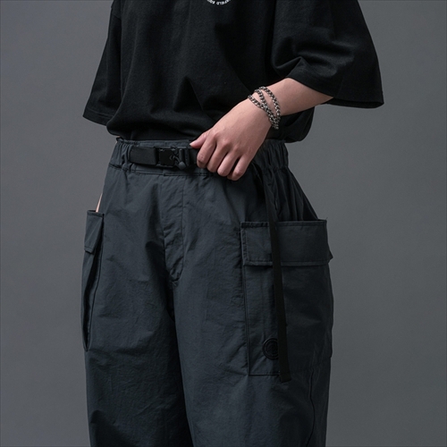 背面とサイドの大型ポケットが印象的な一本は、アメリカ軍のP44ユーティリティトラウザーがモチーフ。クイックにサイズ調整ができる、マグネットバックルのベルトを搭載。