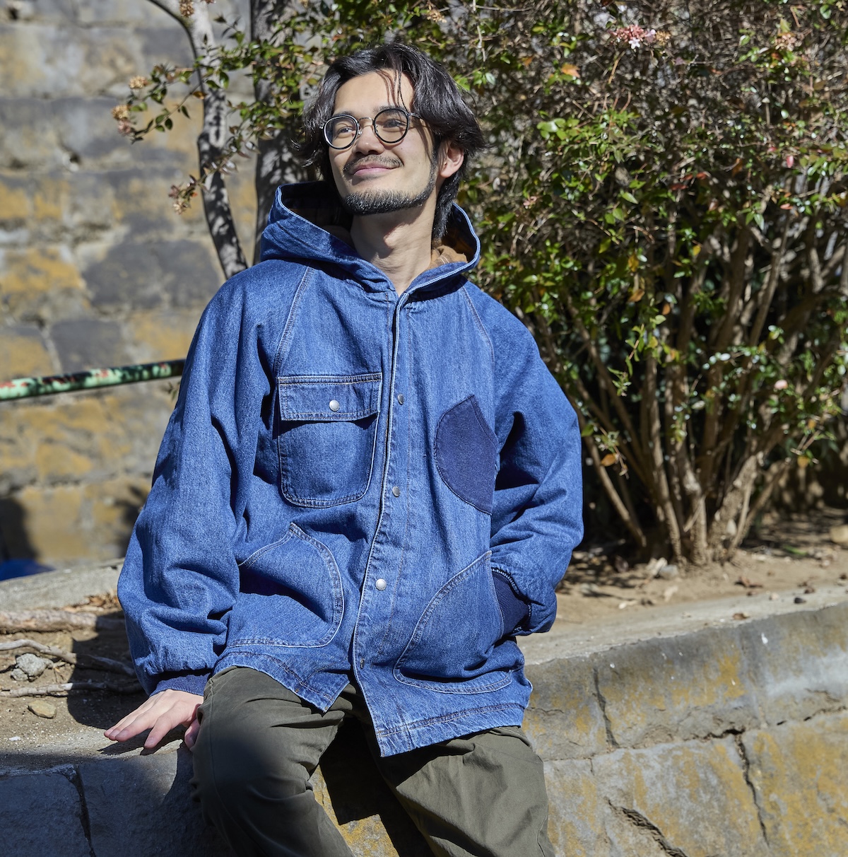 頑丈なうえに風合いも味わえるデニム地とカツラギ素材を使い、大容量ポケットを備えたフードタイプのジャケットに。袖口はまくって着用できるリブ仕様にデザイン。