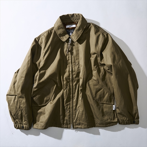 ヴィンテージから着想を得たフライトジャケットを、アウトドアウエアに使われる高密度のベンタイルクロスを用いて製作。ドロップショルダーの現代的なワイドフィット。