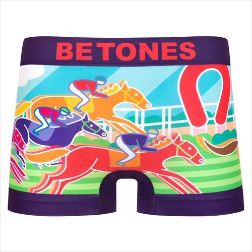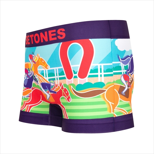 あらゆるカラーリングを駆使し、競走馬を抽象的に描いたアンダーウエア。脚を通すだけでキブンを高める一枚は、優れた伸縮性と立体的な3Dフォルムで身体にフィット。