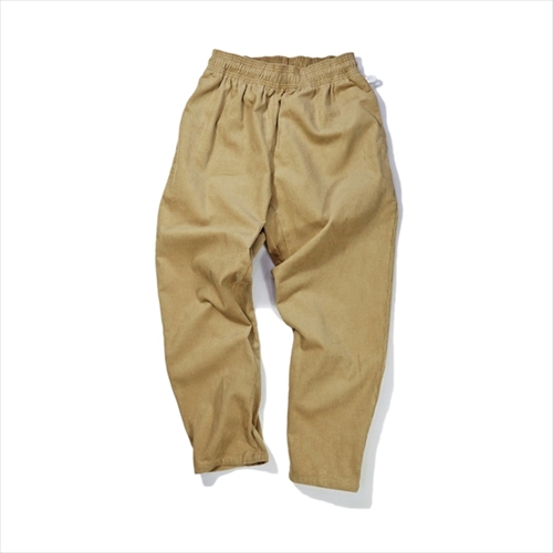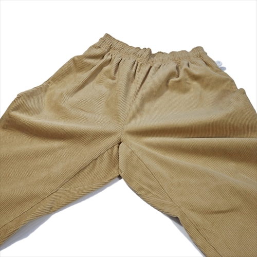 クライミングパンツに見られるガゼットクロッチにより、脚の可動域を広げたイージーパンツにデザイン。光沢感のある細畝コーデュロイによって上品な雰囲気に。