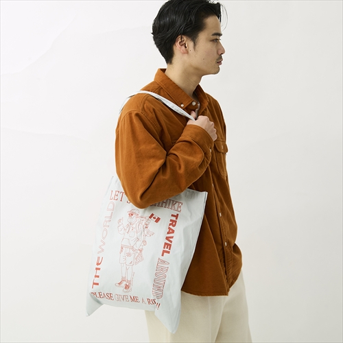 毎日の通勤や通学だけでなく、買い物のエコバッグとしても活躍するカジュアルなデザイン。脱力感のあるポップな手描きイラストがコーディネートを引き立てます。