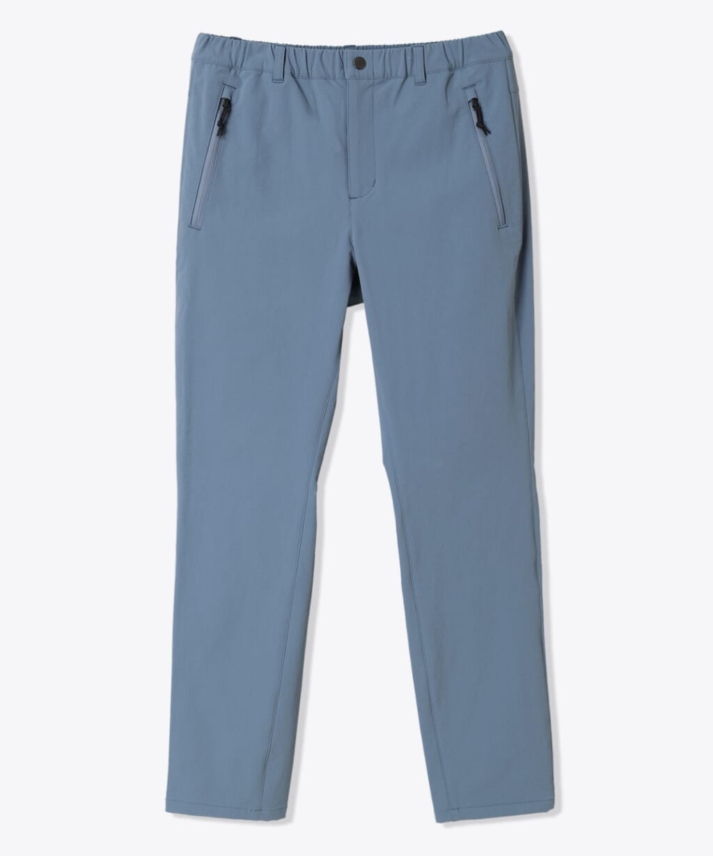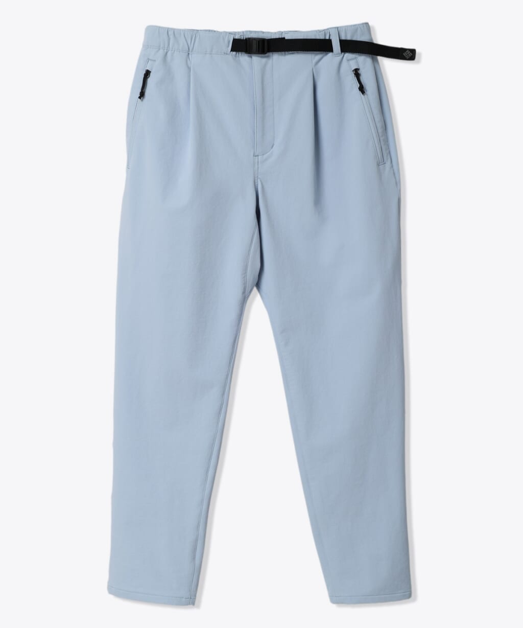 すっきりとしたテーパードラインを基調に、フロントタックでヒップや腿まわりに程よいゆとりを確保。通勤スタイルにも馴染む上品さを持ちつつ、高山登山からキャンプまで幅広く対応する万能モデル。