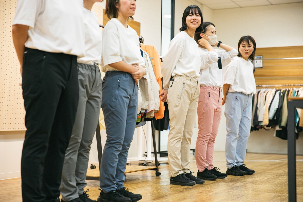 商品企画・店舗・営業・Eコマースなど、部門を横断した女性社員によるプロジェクトから生まれた本アイテム。登山を趣味とする女性やファッション業界で働く女性へのヒアリングを重ね、「街で履きたいシルエット」「合わせやすいカラー」といったリアルな声かま反映されている。